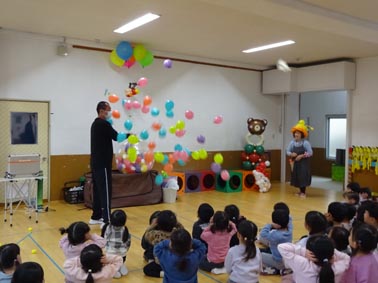 風船が色々な物に変化して、びっくりしている様子でした。