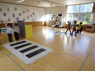 境内では、段ボールカウンターでのお店屋さん。先生たちのアイデアが面白かったです。