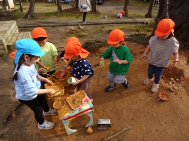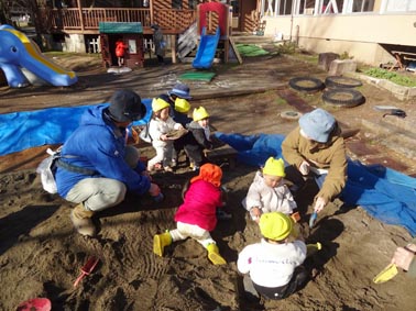 ふたば組さんもお砂場がお気に入り。いい顔で砂遊びを楽しみます。