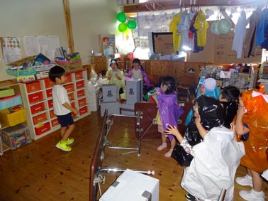 各クラスで、お化けが流行中。さくら組さんは、お化け屋敷を作ってお客さんを驚かしています。
