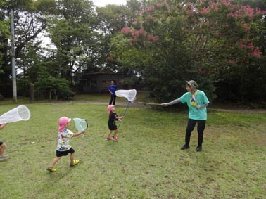 暑さの中にも秋を見つけに。草むらのバッタも大きくなってきました。秋の虫をたくさん捕まえたいと思います。