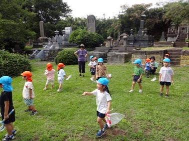 境内では、遊びながらのリレー練習。バトンの受け渡しもすっかりお手のもの。
