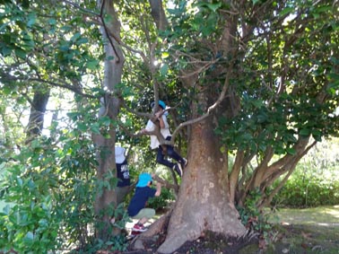 園庭では、木登りを満喫。春に比べると高いところまで登れるように。