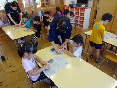 普段は、接する機会が少ない中学生に子どもたちも大喜び。