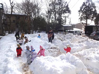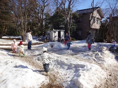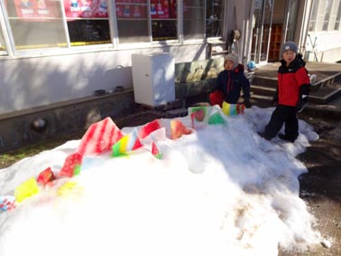 それでも子供たちは、名残惜しそうに雪遊びを楽しみます。