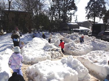 ・外にはたくさんの雪が。雪遊びもダイナミックになってきました。