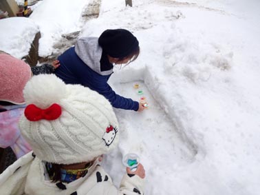 ・雪遊びのバリエーションも増えてきた子どもたち。
